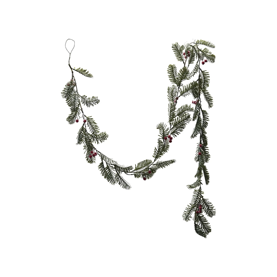 72"L x 8"H Faux Spruce Garland with Red Berries, Ice Finish