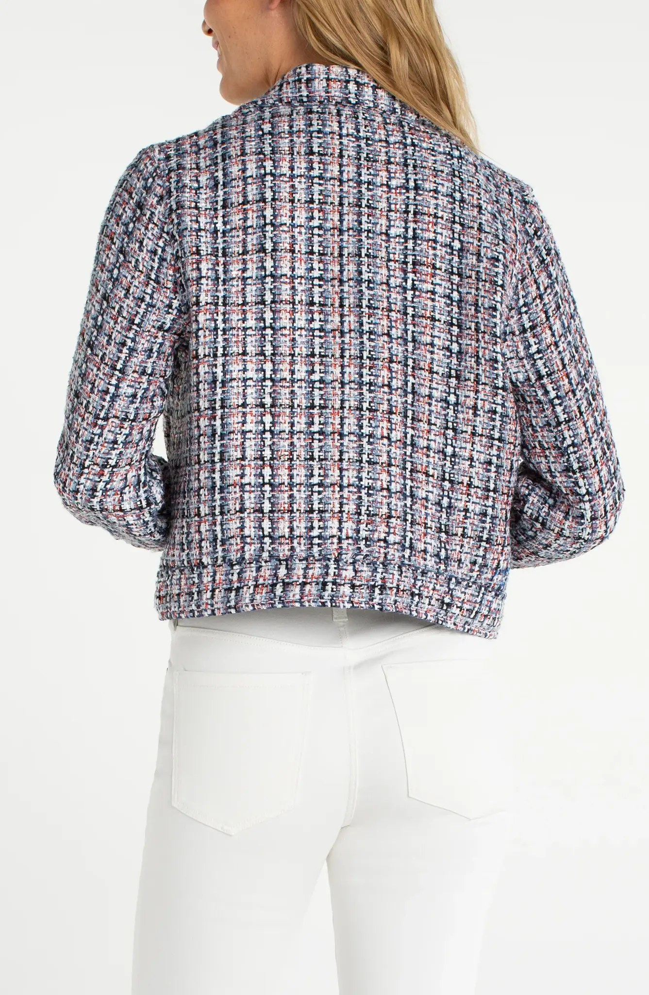 Add a touch of timeless charm to your wardrobe with the Liverpool Navy Multi Plaid Button Front Jacket. Designed in a cozy brushed fabric with a tailored yet relaxed fit, this jacket blends classic plaid with everyday versatility. The rich navy and multi-tone pattern pairs beautifully with denim or trousers, making it perfect for layering through every season. Detailed with button-front closures, flap pockets, and refined seaming, it’s the ultimate mix of comfort and polish.