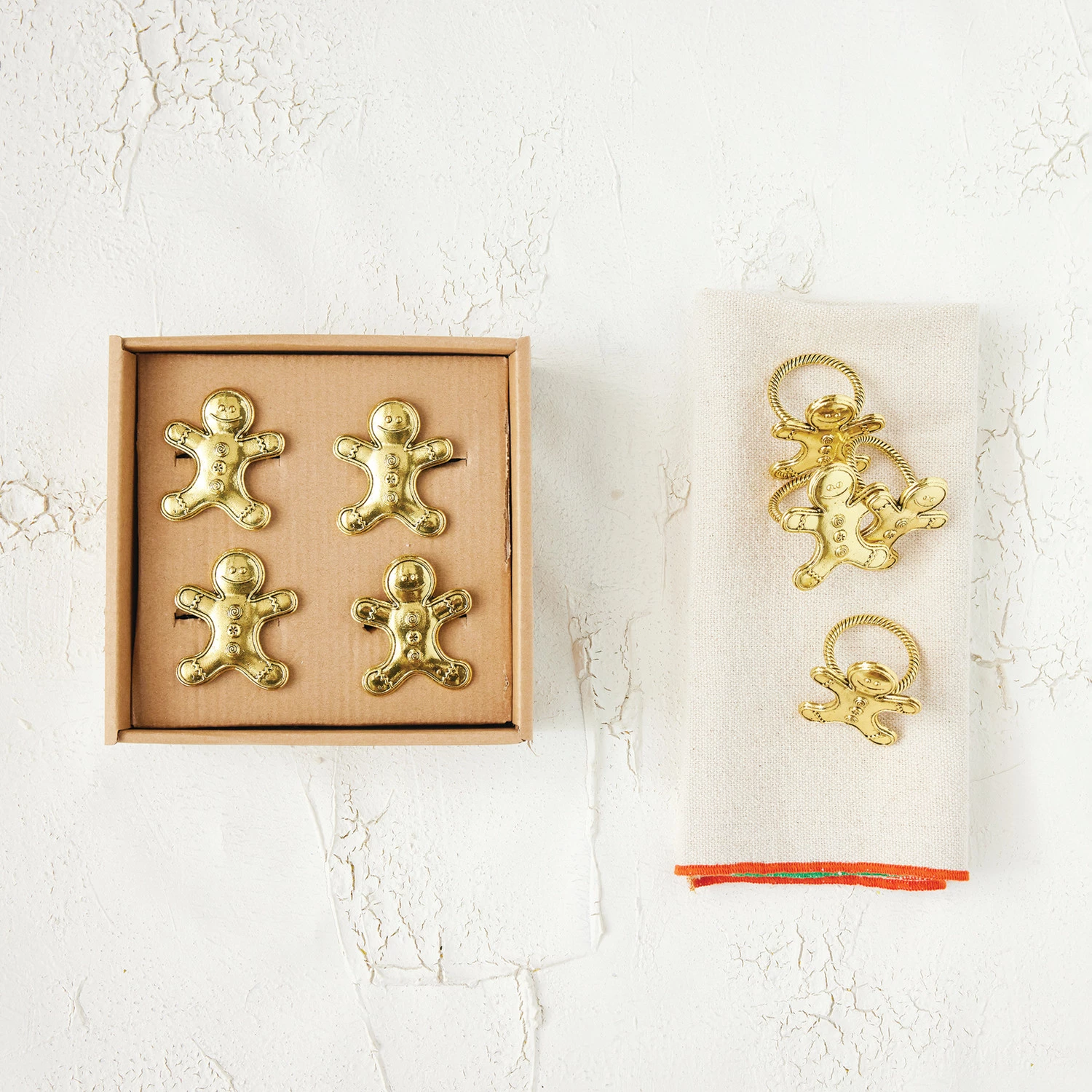Napkin Rings with Gingerbread Men, Boxed Set of 4