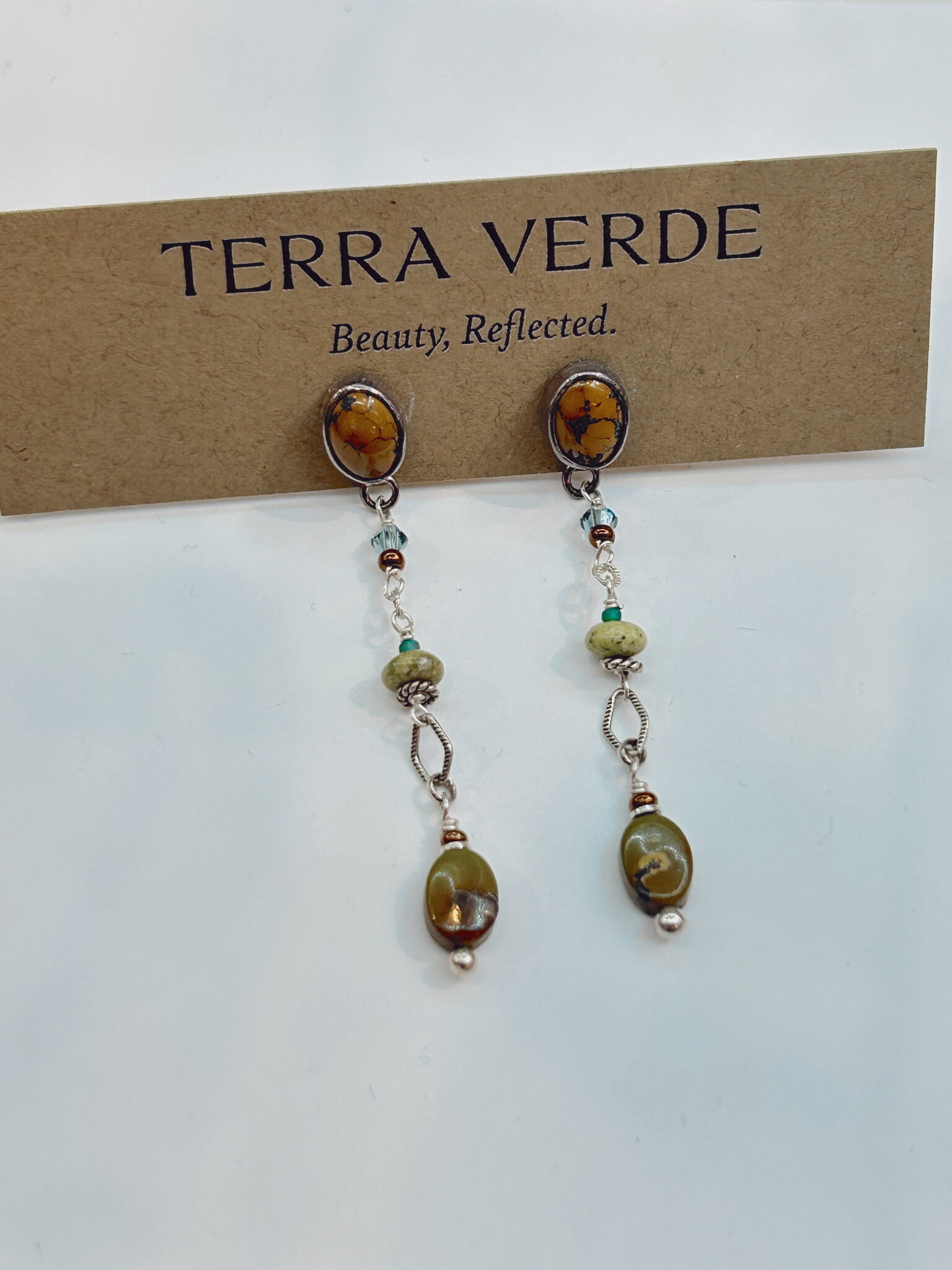 Earring: 2" - Sterling Silver, Turquoise, Serpentine, Swarovski crystal