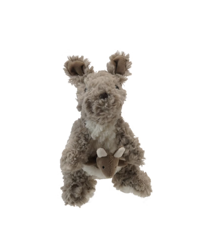 Plush Kangaroo w/ Joey in Pouch, Grey & White