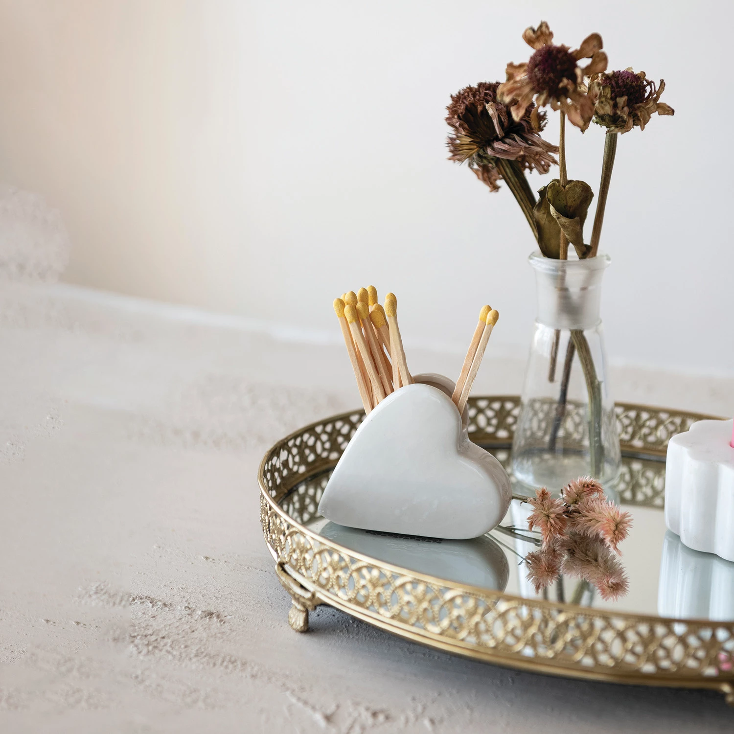 • Creative Co-Op Stoneware Heart Shaped Match Holder with Striker, White