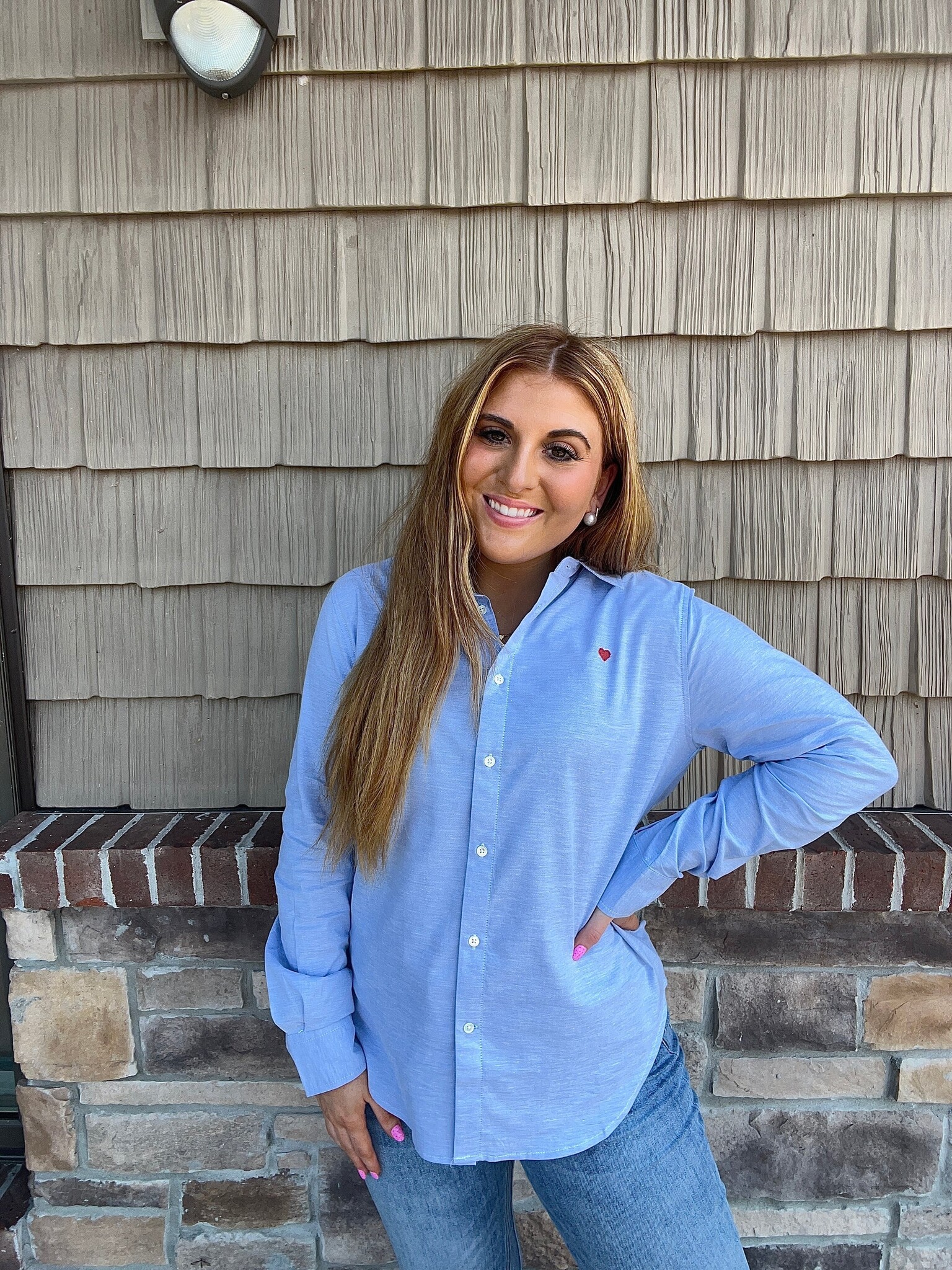 button-down collar w/ heart embroidery